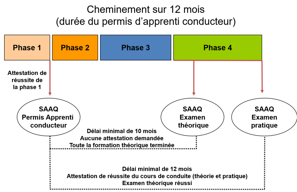 Il faut compléter la phase 1 et l’évaluation de la phase 1 (lors du 5ième module) pour obtenir le permis d’apprenti conducteur.
